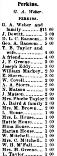 While browsing through Google Books, I ran into the Minutes of the North Ohio Conference of the Methodist Episcopal Church. In the Appendix which lists the financial contributions to missionary fund, I came across the name of my great great great grandparents, Mr. and Mrs. Lindsey House, as well as the names of my great great grandmother, Marian House, and two of her sisters, Mina and Hattie, in the listing of donors to the missionary fund. They attended the Methodist Episcopal Church in Perkins Township of Erie County, where Rev. G.A. Weber was the pastor in 1871. This shows me that my House ancestors thought giving to missions was a worthy cause. Also, the names of the other people who are on this listing are the people with whom my ancestors spent time. The church was a very important part of the residents of Perkins Township in the 1870s. These folks helped each other in times of need, at harvest time, funerals, weddings, and at the birth of new babies. Looking at the 1870 Census will show the name of each family member of these Perkins Township residents. The 1874 Erie County Atlas shows precisely where many of these families resided. Great Great Grandma Marian married George B. Parker in 1879, and their only child Leroy J. Parker was my great grandfather. What fun to see this little slice of life about Great Great Grandma Marian!